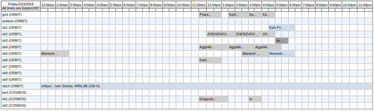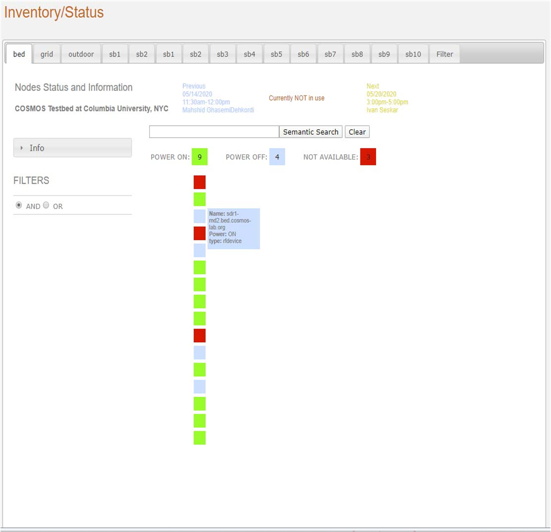 Status page offers view of the state of the entire COSMOS testbed (and it's "sister" ORBIT testbed) and is shown in Figure 2.