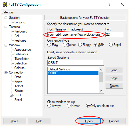 To test your setup, open a command-line terminal and (replacing your_orbit_username with your own ORBIT username) type: