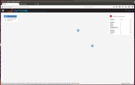 ONOS topology will display the GW node and the non-GW node as shown in Figure 5 when the network controller detects/registers the nodes.