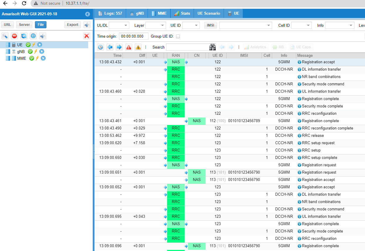 - Amarisoft Web Interface can be used to analyse software logs and get information in real time. It can also be used to execute UE scenarios.