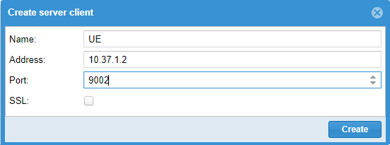 - Click 'server' in the left client panel, and add MME, gNodeB, UE to look at the logs. Use the appropriate IP addresses and ports as shown below