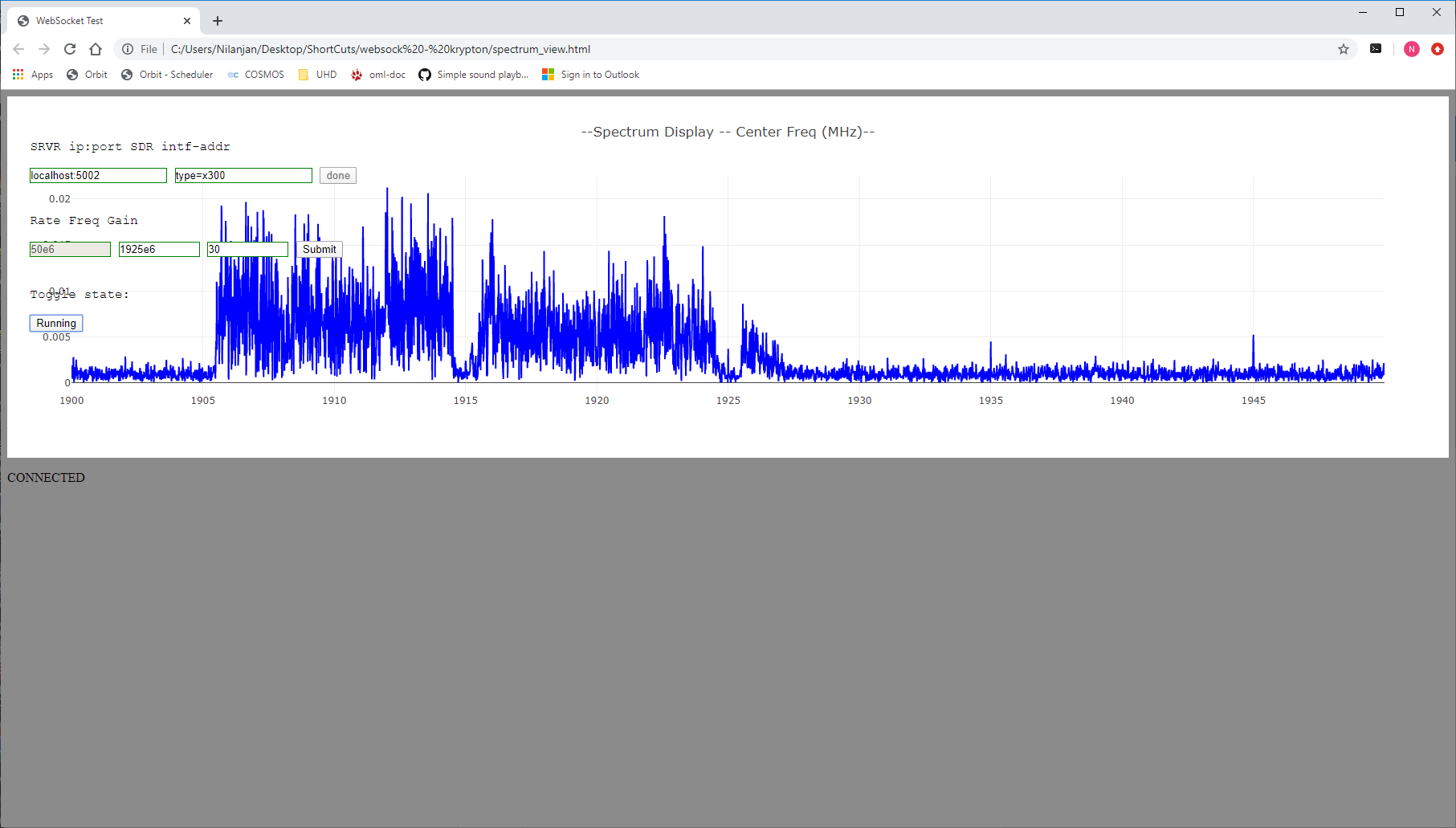 When opening a terminal into console.sb1.cosmos-lab.org set up a tunnel from localhost:5002 to sdr2-s1-lg1.sb1.cosmos-lab.org:9002. This will be used by the web app to connect to a server running on the USRP 2974(Krypton)'s host.