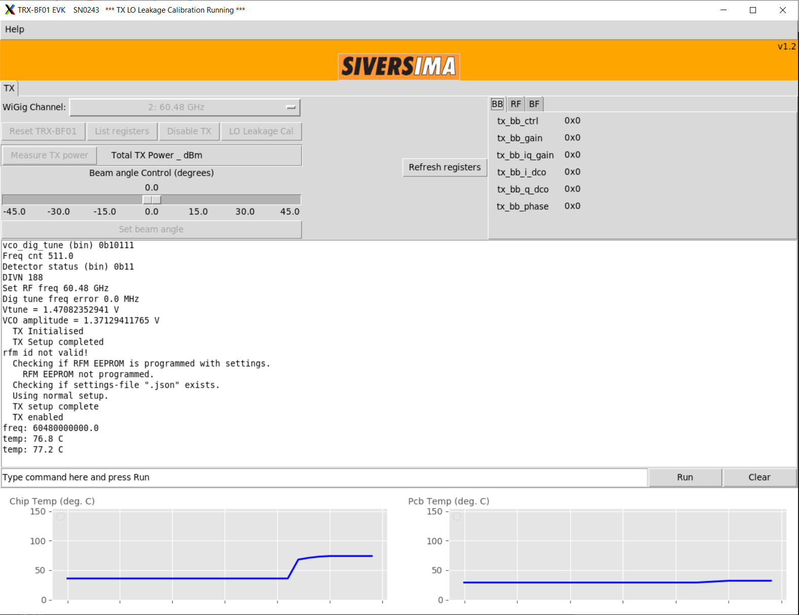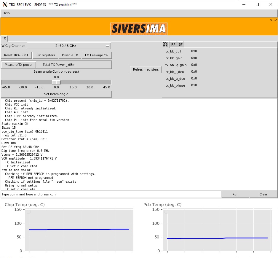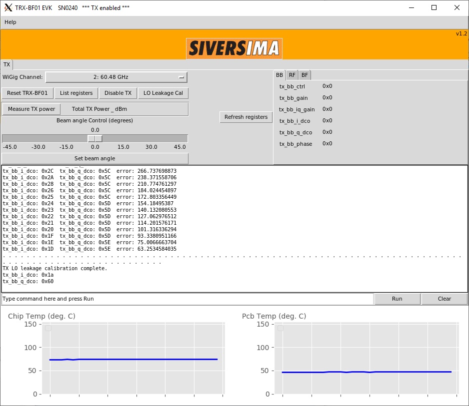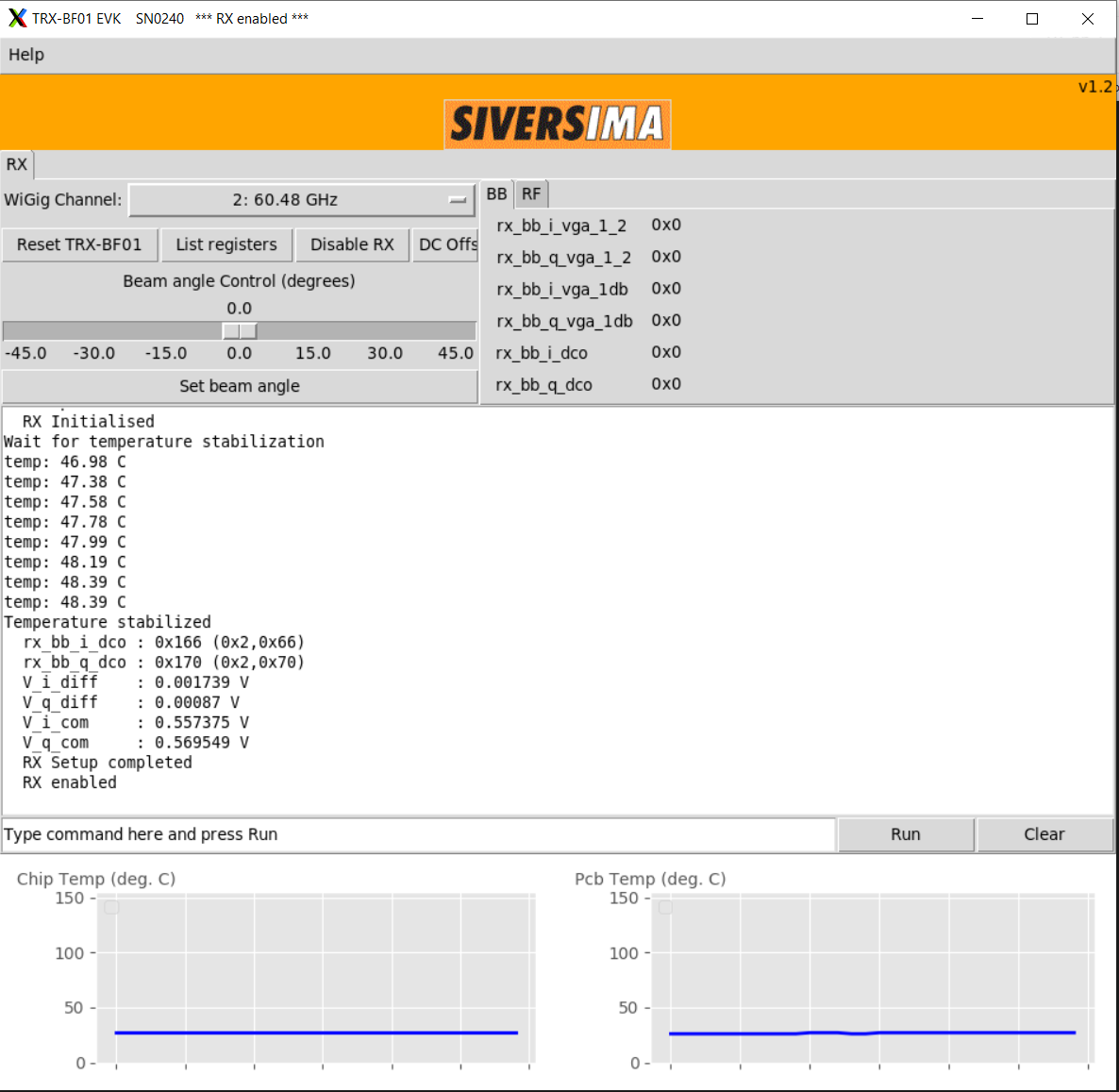 - To demonstrate the experiment here, we use Sivers front-end SN0243 as transmitter and SN0240 as receiver