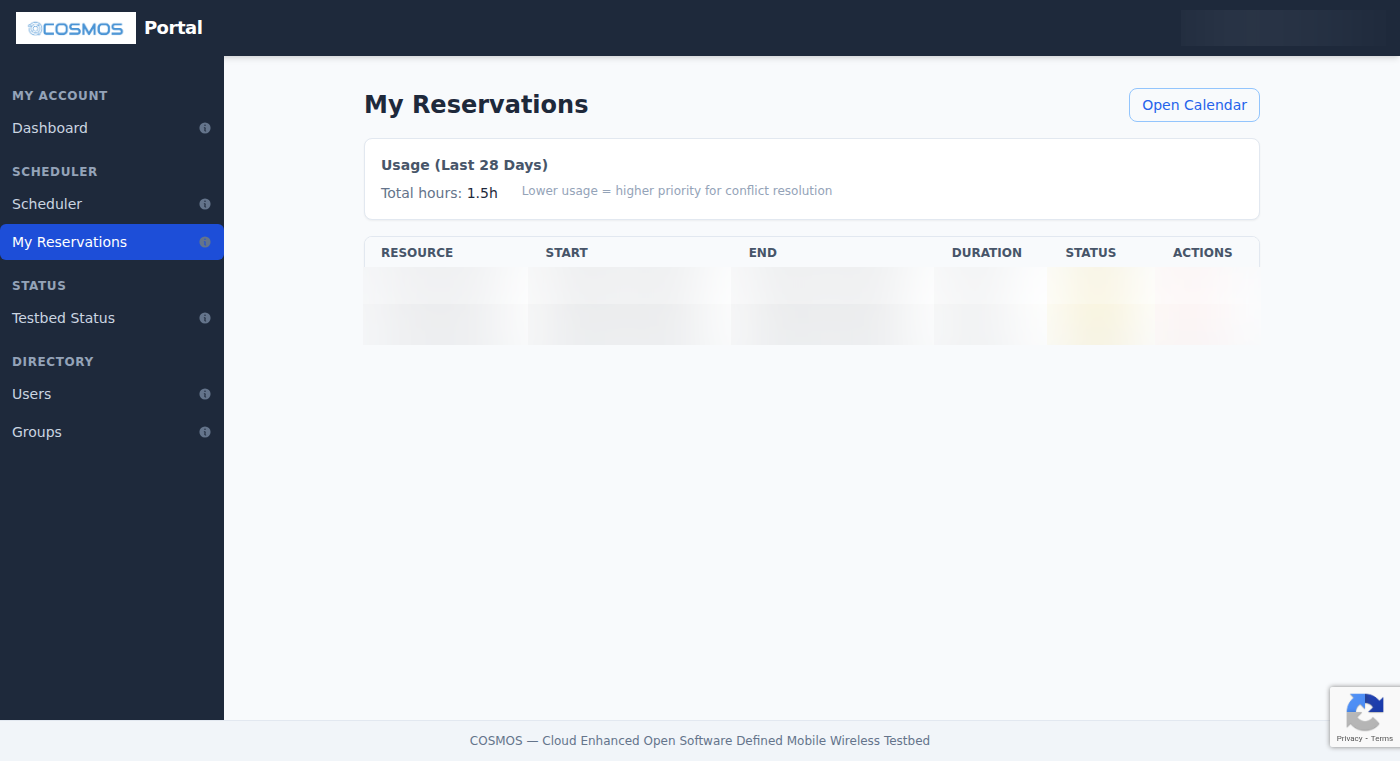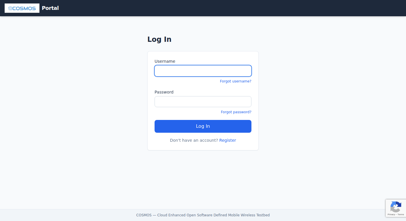 The COSMOS Portal is a web application for managing your testbed account, making reservations, and monitoring testbed resources. It is the primary interface for all COSMOS and ORBIT testbed users, from first-time registration through day-to-day experiment management. This guide covers the features available to regular users.