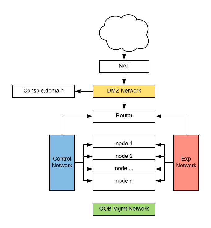The console has an external NAT address, as well as an internal address on the DMZ network, which is used to contact the nodes.